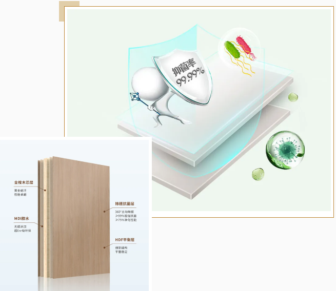 “好房子”的突破不仅在于设计与材料,更在于开创性的功能科技。地宝龙通过施加甲壳素、纳米硅、银离子等天然精粹材料,实现了24小时持续吸附甲醛,净化性能高达75%以上。这一技术不仅安全无毒,还真正实现了从“无害”到“主动防护”的跨越。同时,专利银离子抗菌防霉技术以99%的超强灭菌率,对金黄色葡萄球菌、大肠杆菌等常见致病菌与霉菌起到强烈抑制和杀灭作用。无论是潮湿的卫生间还是密闭的储物空间,家的每一处角落都得到了长效保护。