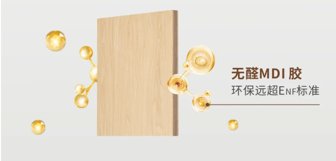 “好房子”的打造,离不开优质材料的支撑。本次样板间采用板木结合工艺,其中柜体选用了地宝龙桉芯板,原料源自A级黄金树龄的天然桉木,通过多层压贴制成,结构稳定;更以无醛MDI胶粘合,环保等级达到国家最高ENF级,从源头上杜绝了甲醛隐患。柜门则采用天然橡木木皮搭配环保水性漆,直纹清晰自然,触感细腻,不仅无毒无味、健康环保,更具备优异的耐水、耐磨与耐黄变性能,可以实现装修后快速安心入住。
